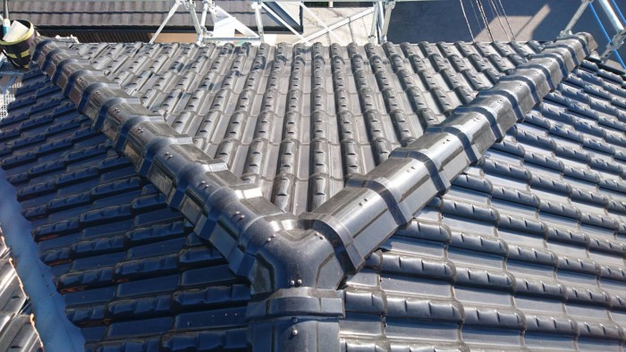 R2年 3月 匝瑳市 Y様邸 瓦割れ修理 棟瓦ビス打ち替え工事 雨樋工事 外壁塗装補修工事 台風被害 | 屋根の修理・雪止め設置は埼玉県の仁瓦工業